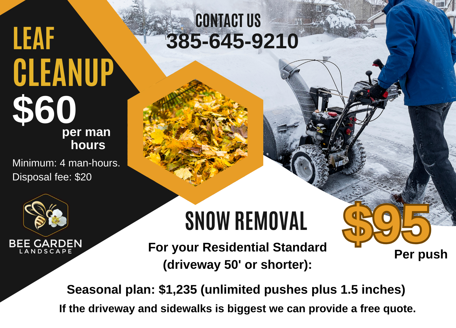 The leaf cleanup is other opportunity to keep the yard in good shape and off of the excess of leaves and debris, usually we do the leaf cleanup hourly rate $60 per man hour with minimum of 4 hours and 10% of the final price for disposal fee.